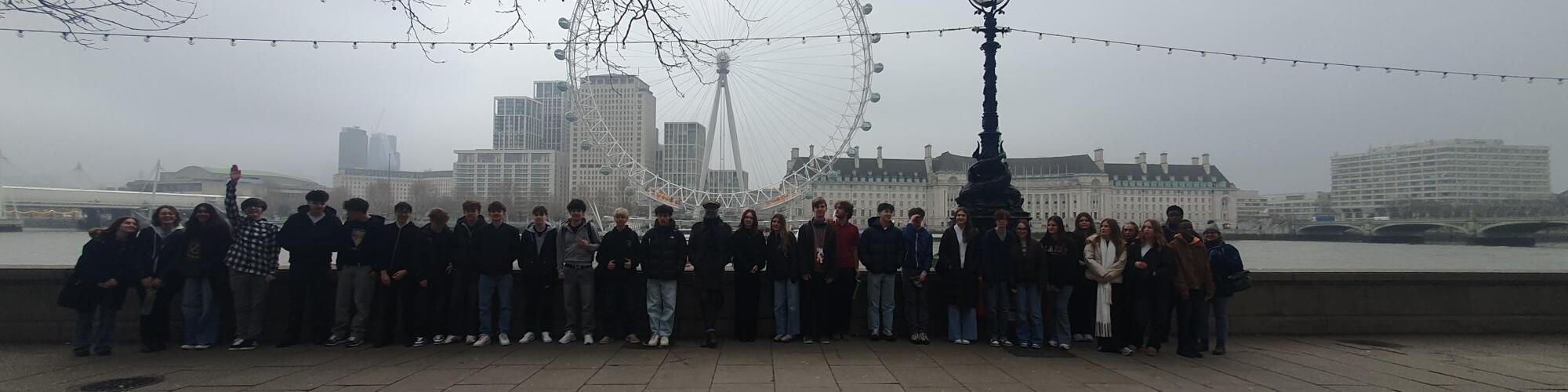 Posted on 26th Jan 2026It was still dark when the intrepid students arrived at school. The coach set off at 5.30am for the trip to London. As we neared our destination we were greeted by heavy traffic, with low cloud obscuring skyscrapers, and the point of The Shard totally hidden from view. The coach parked at the Embankment, giving students the opportunity to see the London Eye and the river traffic on the Thames before setting off for Parliament.