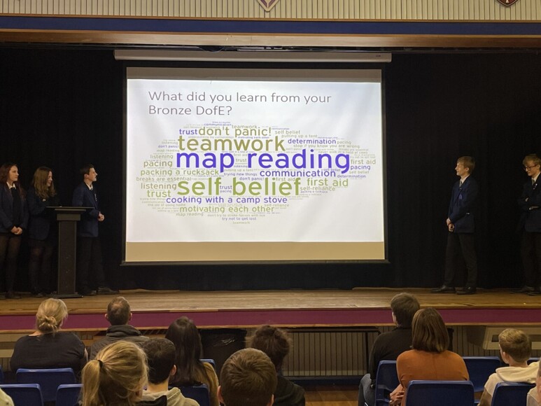 Mrs Bisley is our resident DofE expert; she informed the audience of more than 50 interested students about the hope to run expeditions in Thetford Forest, along the North Norfolk Coast and Lincolnshire Countryside. From our expressions of interest, we are hoping to have another 11 new bronze and 13 new silver award participants. The evening was supported by some of last year's DofE expedition students who shared their experiences of camping, hiking, and talking to cows!
