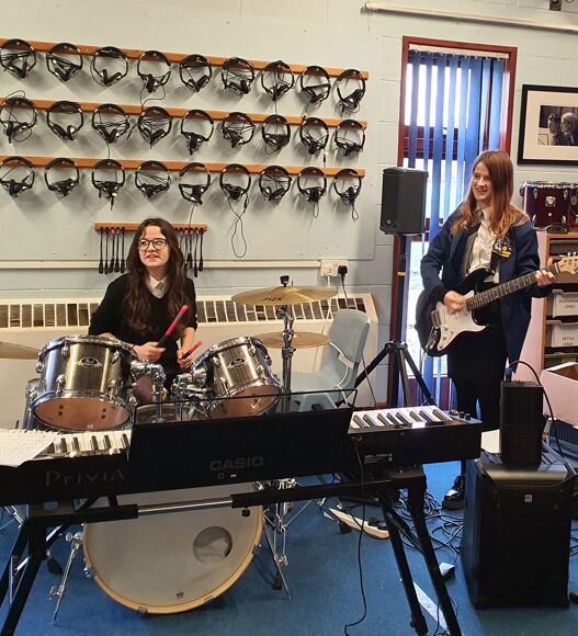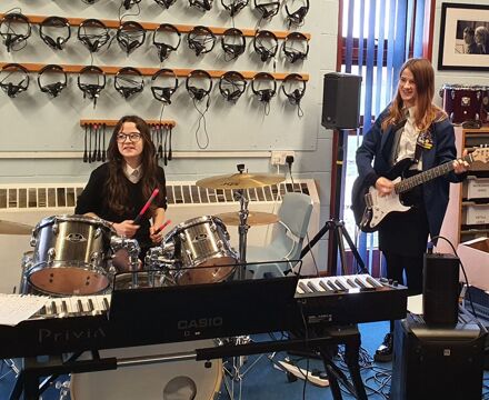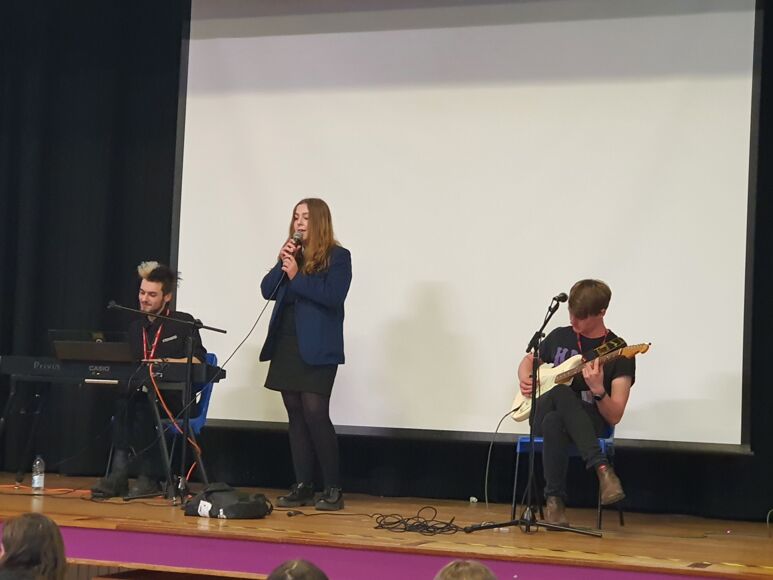 It was amazing to see how their confidence grew, and to witness their fantastic performances of their own material. After this had taken place, Year 10 options students joined Liam and Kyle from IEMusic to watch a series of performances, and some students were invited to join them in performing on stage.
