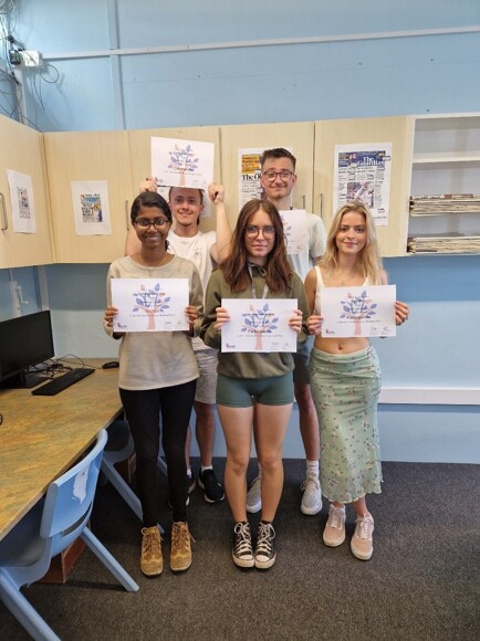 Year 12 A Level Biologists proudly displaying their awards – Back row, left to right: Daniel Woollaston (received a Commended award), Nathan Turner (received a Participation award)