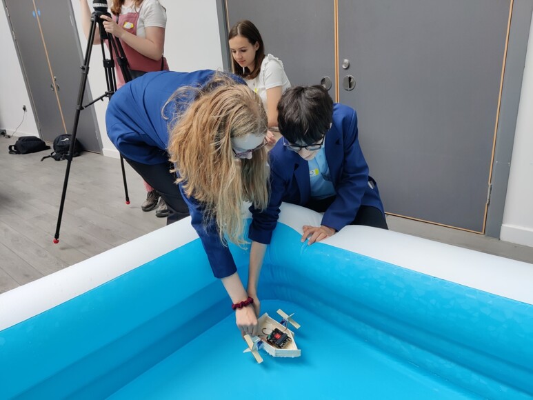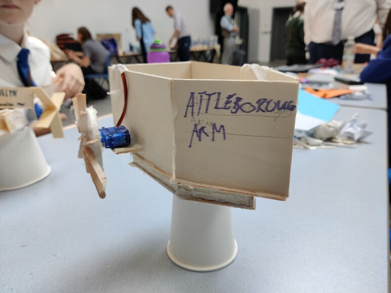 "We were brought on a “secret mission” where we had to build a world changing invention to solve a worldwide problem from the UN’s global goals, which has and will continue to plague the oceans of our planet; Oil Spills. We had to create a boat of our own imagination that surveyed and cleaned a large surface area, it was called an “oil cleaner upper”. There were two aspects of this project, building and programming. Everyone was split into of teams of 3 or 4. We organised our teams to play to our strengths. The first part of the building phase was design ideas. We used tablets to research designs. We then created designs that we thought would hold the technology required; BBC Micro:Bits. We then started busing with materials like balsa wood, hot glue, motors, wires, coffee stirrers, coffee cup bottoms and the servo’s as well as motor controllers. We programs the motors given using the make code website with blocks and used thinking skills to decide which ways to turn to try to cover the water. We tested it and couldn’t believe it! It worked! With a bit more tweaking of the code, we got it to cover the area more accurately and reliably."